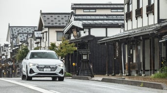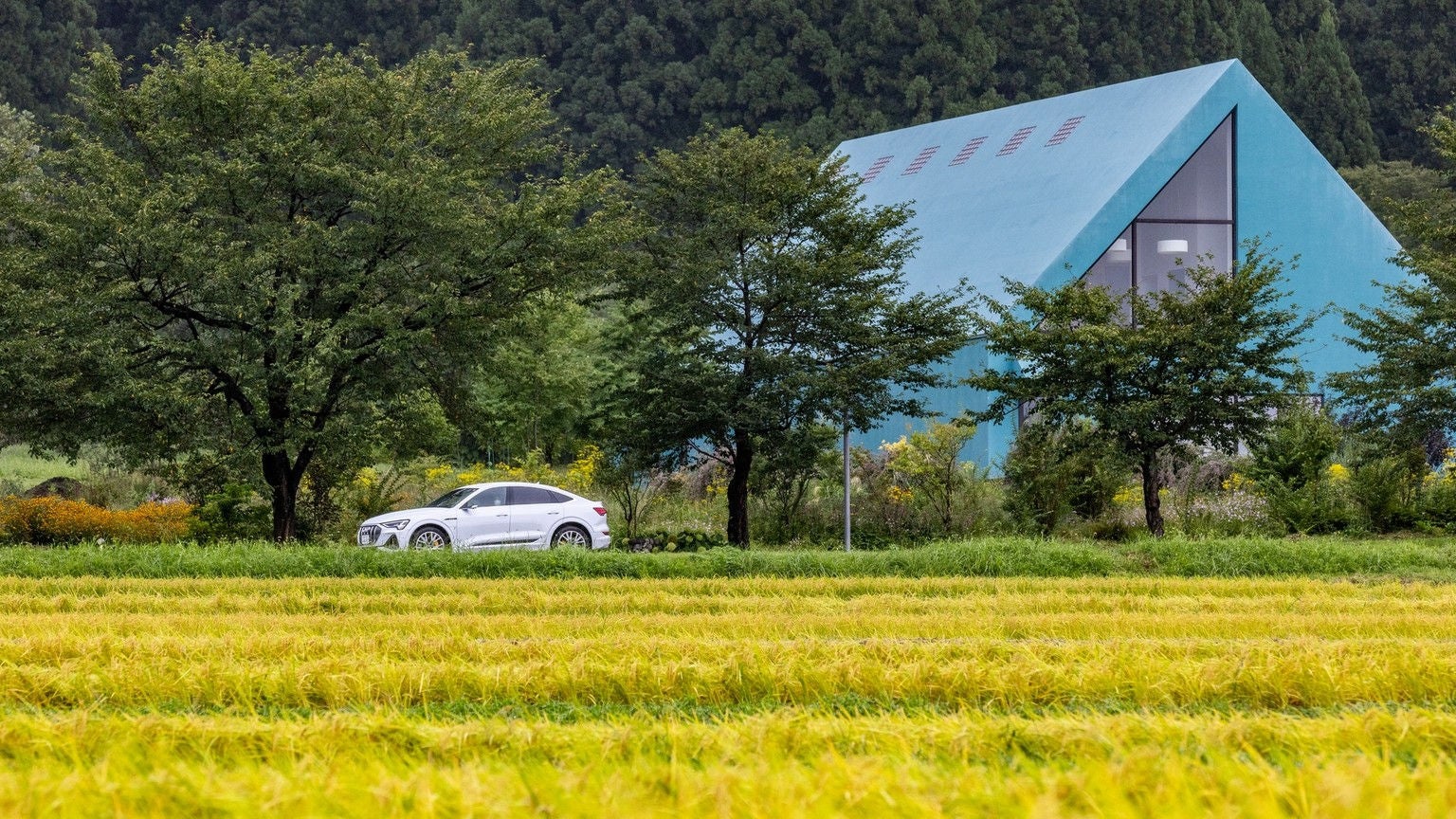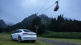 雄大な南魚沼の自然にも調和する優美なシルエットと、ロングドライブでも頼りになるe-tronの走り。