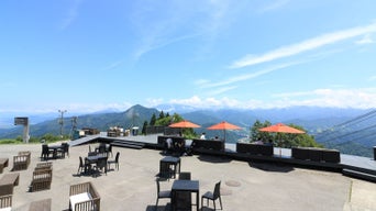 山頂では、日本最大規模を誇る高山植物が出迎えてくれる「高山植物園・アルプの里」、木と木の間を疾走するアトラクション「ジップラインアドベンチャー」や坂を一気に下る「サマーボブスレー706」などが点在し、遊び方は多彩です。さらに、地元食材を使った展望レストラン、森の中のジェラートショップなど食もバラエティー豊か。中でも山頂駅内にある「雲の上のカフェ」はひと休みがてら、ぜひ立ち寄ってほしいスポット。その名の通りテラス席からは雄大なパノラマが広がり、非日常の世界を堪能できます。