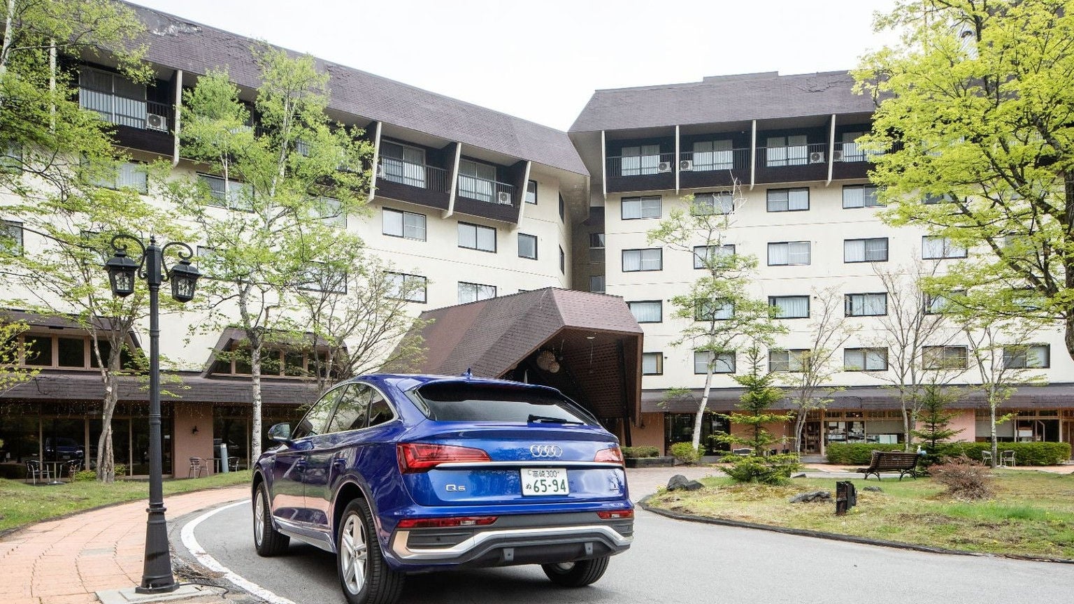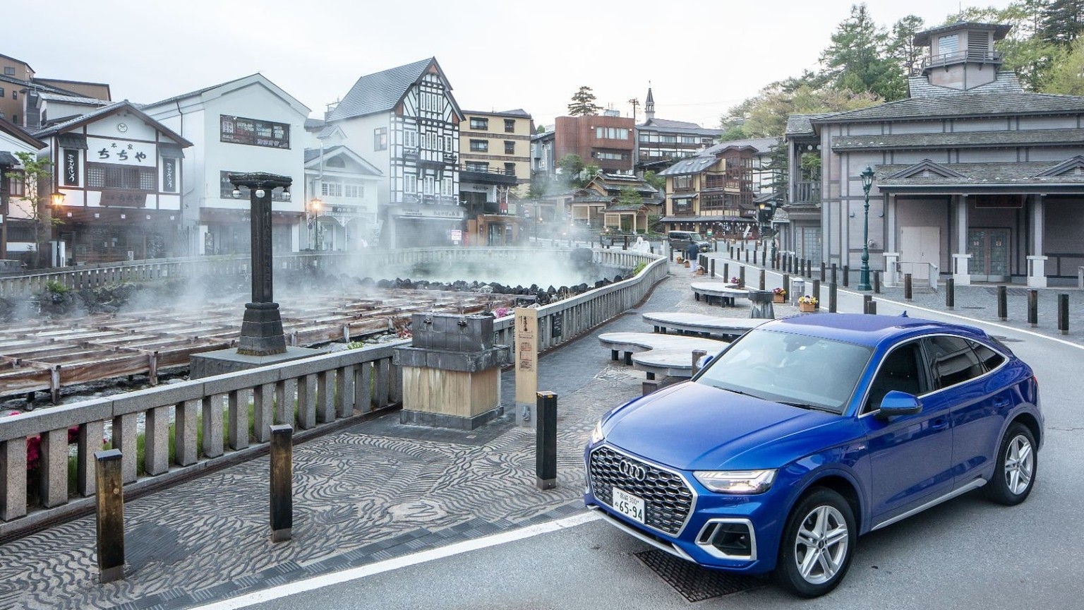 Audi SUVの中でも、一際、優美で独特の存在感を放つ「Audi Q5 Sportback」は、草津の雄大な自然美との調和も抜群。