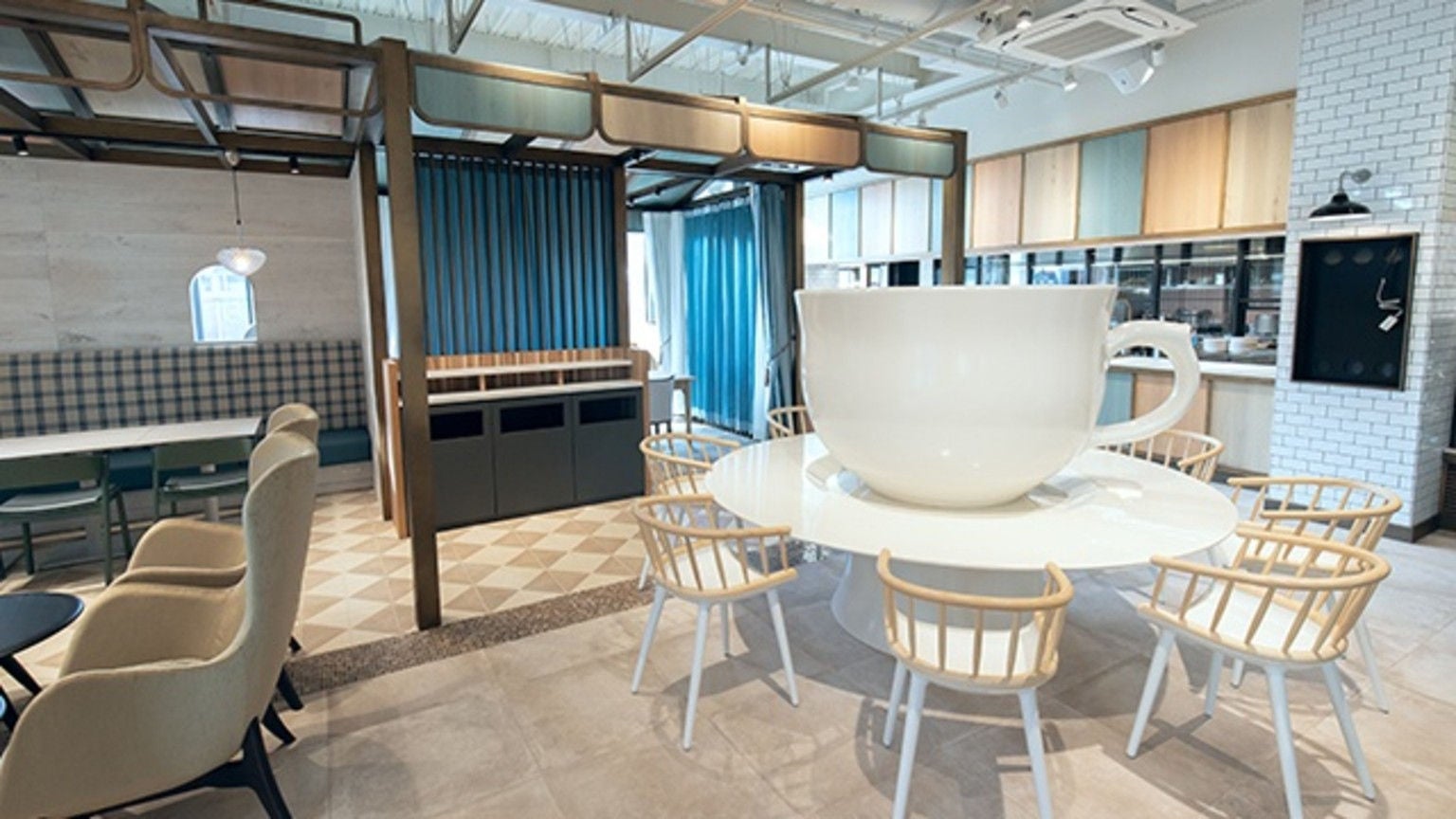 到着してまず驚いたのが、そのユニークな外観。13倍スケールのダイニングテーブルをかたどったという建築物は、うなぎパイのコンセプトである「家族団らん」を象徴しているとのこと。さらに施設内では、大きなエッグスタンドやコーヒーカップのオブジェたちがお出迎え。独特の世界観が味わえるSWEETS BANKは、ライトアップされた夜も素敵です。
